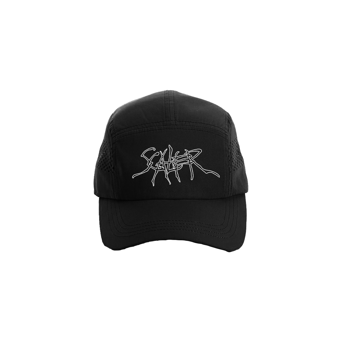 Black Technical Running Cap with white embroidered logo.