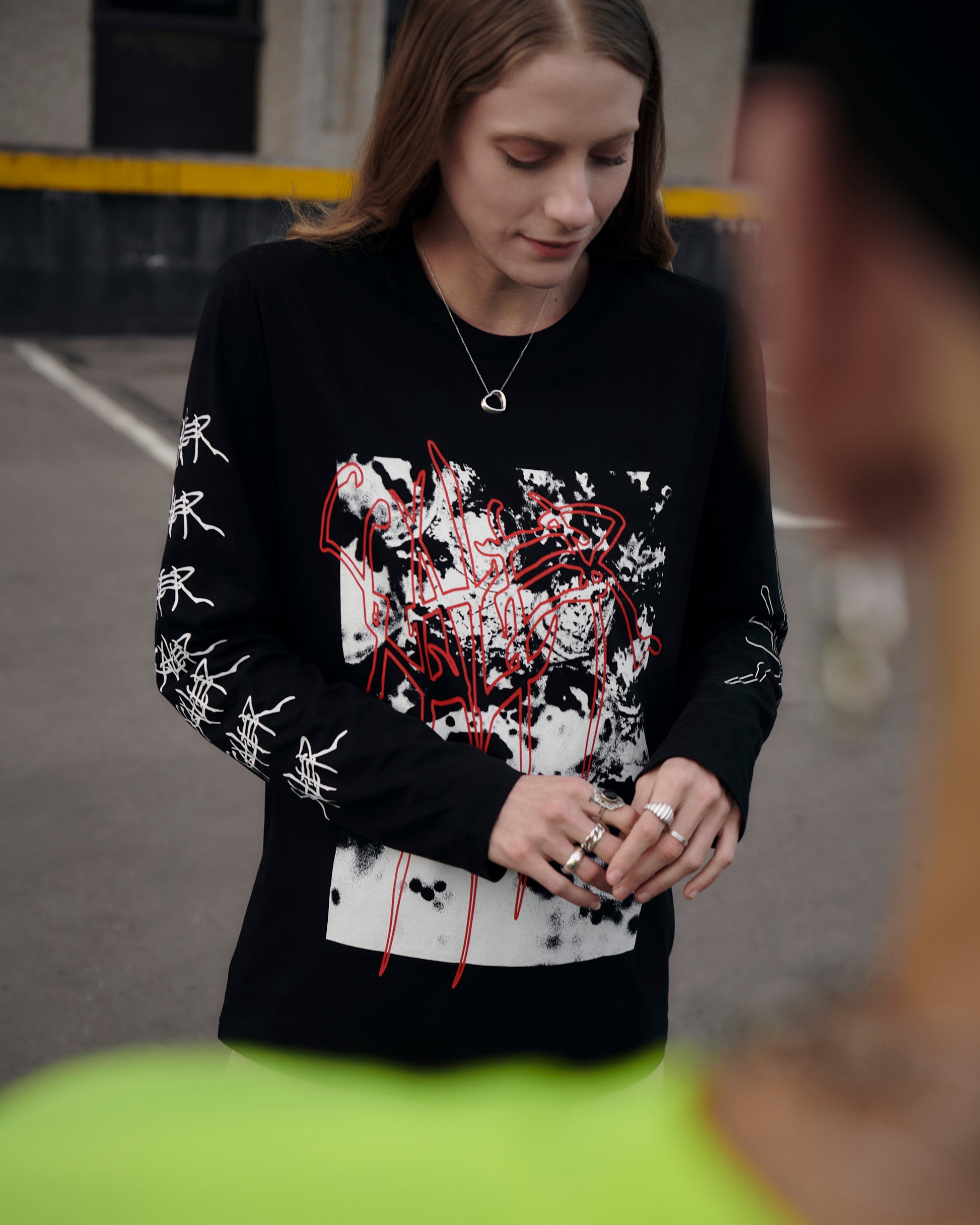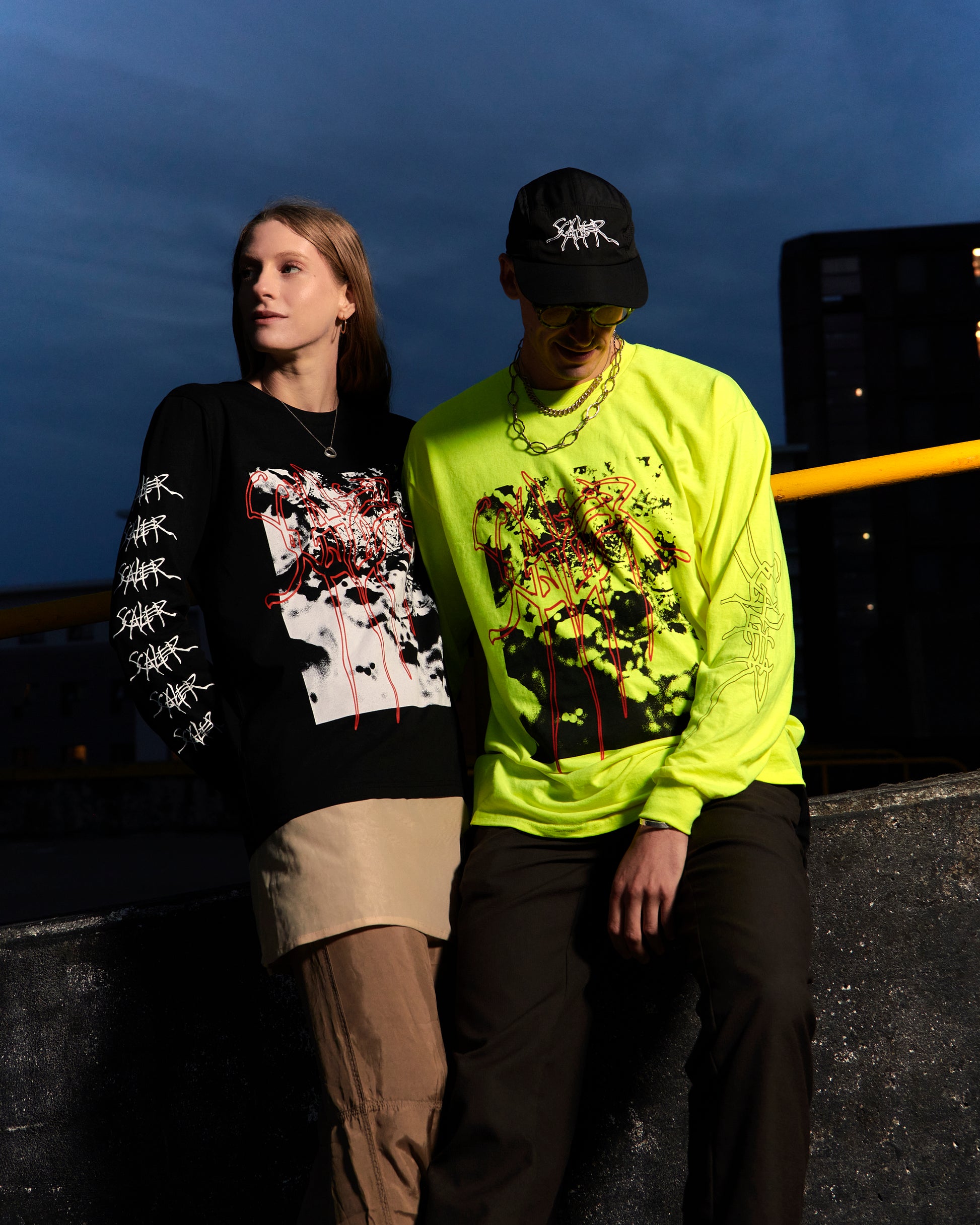 Stanley/Stella high quality black longsleeve with oversized front print and double sleeve print.