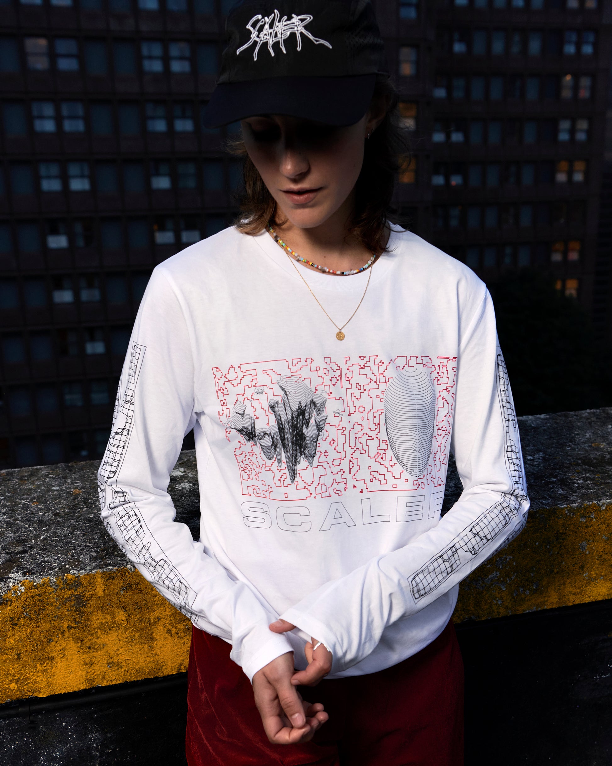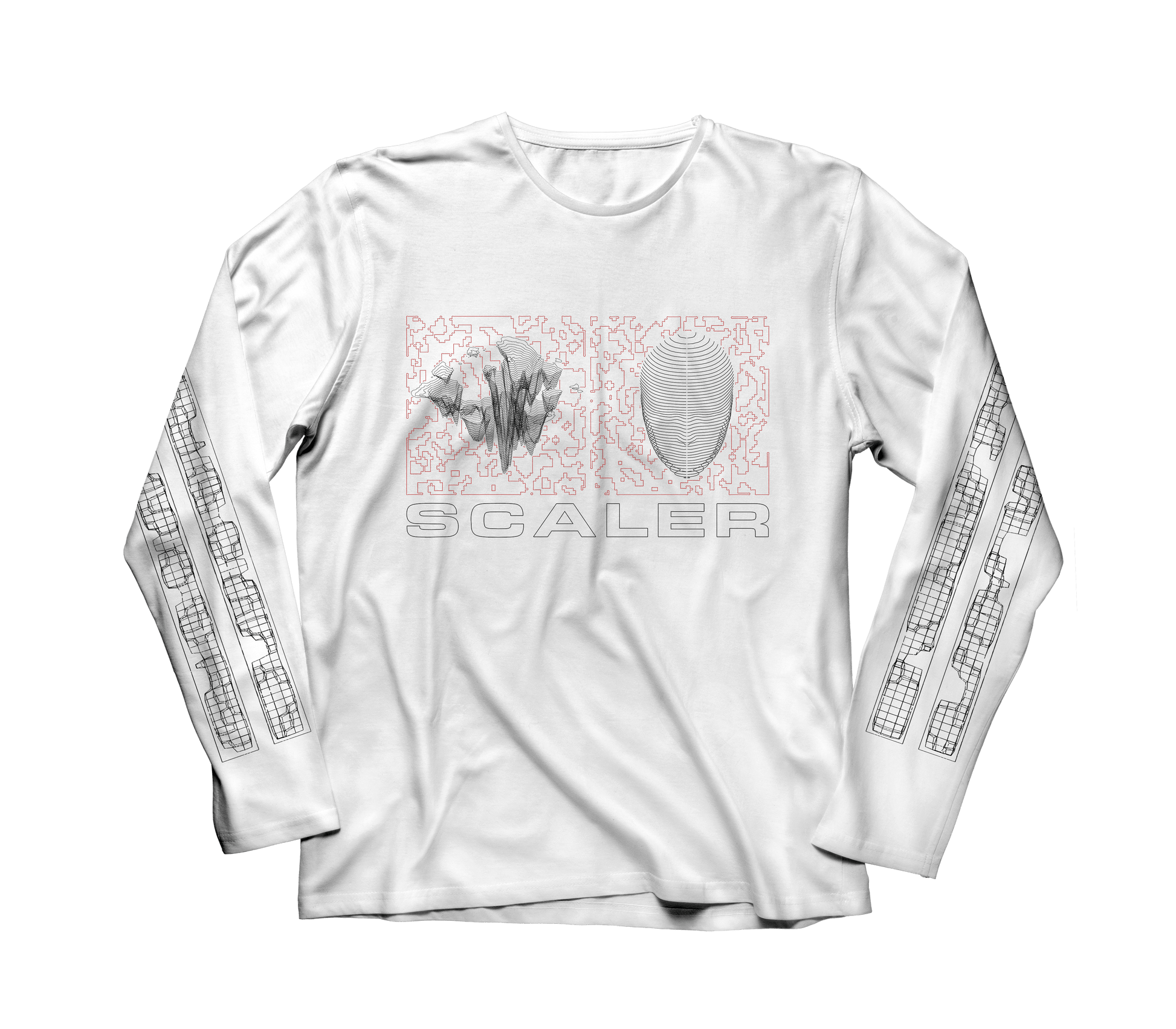 Stanley/Stella high quality white longsleeve with front print and double sleeve print.